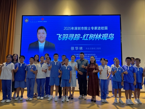 2025年9月26日,徐华林老师受邀来到深圳市龙华区教科院附属学校,为师生带来了一场题为《飞羽寻踪——红树林观鸟》的精彩讲座。徐老师以生动有趣的语言、丰富详实的图文资料,引领同学们深入鸟类的神奇世界,开启了一场融合自然观察与科学知识的探索之旅。